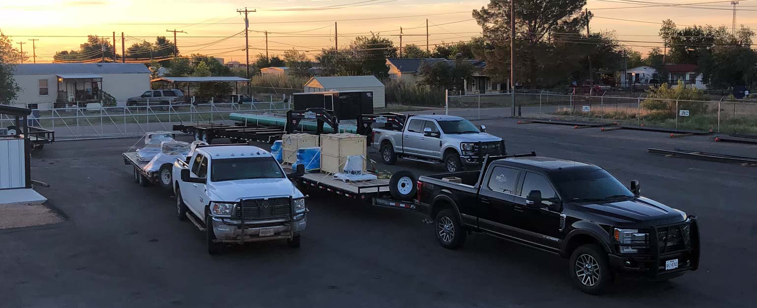 Iron Smith Supply service trucks that we have ready to deliver your supplies. Pumps, parts, pipe are all just a phone call, E-mail, or a text message away.